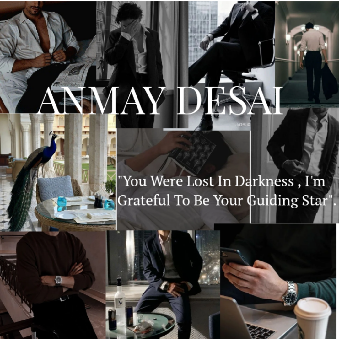 A charismatic CEO of his self-built empire in Dwarka, Anmay spreads positivity and love wherever he goes. His every step radiates warmth, and his charming smile can win anyone's heart. An inspiration to many, he motivates people through his speeches and interviews. His captivating green eyes hold the essence of nature's beauty, yet conceal the immense pain of his past, known only to a select few. Anmay deeply loves his family and friends, prioritizing them above all else. He remains calm and composed, but if anyone dares to hurt his loved ones, they will witness the worst side of him-a side no one has seen before.